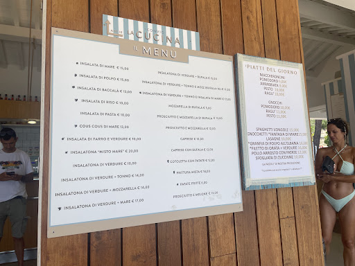 Io ed un mio amico (@Erminio Costanzi) scegliemmo questo luogo per saziare la nostra fame cagionata dall'immenso caldo presente nella settimana di ferragosto, dopo una lunga mattinata in riva al mare distante 50 metri. Appena arrivati a quello che sembrava l'ingresso, ci trovammo una fila di dimensioni smisurate che ci costrinse ad aspettare dall'altra parte della strada rispetto al lato in cui era situata l'entrata. Di conseguenza dovemmo, per una buona parte, aspettare il nostro turno "while standing in the middle of the street" 😅. Ipotizzando che la fila sia causata dall'alto turismo presente in quel periodo e che quindi io non abbia fatto 1 ora se non di più di fila, una volta arrivato al bancone mi trovai davanti un servizio a mensa dove parte del cibo viene servito subito dopo la richiesta, mentre i piatti più elaborati come la pasta vengono serviti più avanti (tempi un po' lunghi se posso permettermi😮💨). Io personalmente ordinai una caprese con bufala (12€) cercando di nutrirmi con un bel piatto fresco e il piatto rispettò le aspettative, peccava però nell'impiattamento dove mi trovai solo dei pomodori oltre alla bufala, che come si vede da foto, vengono tagliati in maniera grossolana. Tutto sommato mangiai bene e la location con la vetrata-muro completamente aperta portava all'interno del locale la giusta ebrezza marina degna di in posto balneare oltre che infondere nel propio inconscio la sensazione di essere rilassati al mare (quasi😖, perché la vista mare è ostruita dalla seconda parte del locale situato dall'altro lato della strada a bordo spiaggia, nel quale giustamente fanno servizio bar e vengono serviti drink con i quali godersi un bel aperitivo...