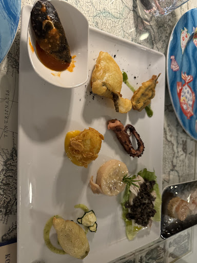 Firstly, the price-quality ratio was not right. The dishes were overpriced for what was offered. The portions were surprisingly small, leaving us unsatisfied. 60 euros (excluding a coperto of 4 euros) for a mixed dish of grilled seafood with barely any fish on it. Additionally, the food was served on cold plates, which detracted from the overall enjoyment of the meal as everything became cold quickly. In my opinion they try to deliver gourmet or fine cooking but this is mainly noticeable in the plating of the dish. The flavours were quite bland.