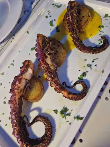 Read morePosto con posizione incantevole, ambiente demode. Servizio buono. Un po pretenzioso . Questo il motivo delle 2 stelle: purtroppo il mangiare assolutamente non all'altezza della reputazione ma soprattutto del prezzo. Dopo aver preso due antipasti, per altro Buoni, abbiamo preso quattro secondi. Di cui un involtini di spada ed un branzino fresco, un filetto di orata ed una grigliata mista. La grossa delusione l'involtino di spada il quale era degno di un ottimo sofficino, in pratica era esterno di spada con ripieno di mozzarella. Il branzino al forno fatto allisolana, cotto troppo e poco saporito. Il filetto anch'esso troppo cotto e poco saporito. Buona invece la grigliata. Senza vino. Il tutto a 50 € a testa. Considerando che mi era stato vivamente consigliato,...