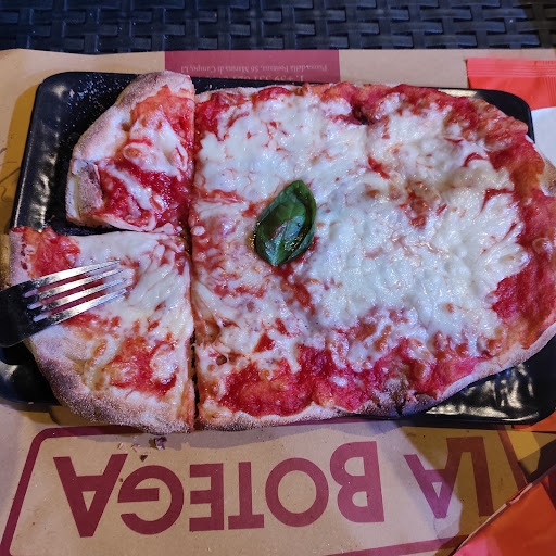 Read moreVolevamo qualche cosa di buono e non troppo sofisticato da poter mettere sotto i denti a fine giornata, perciò La Botega sembrava essere il luogo giusto. Il palato è stato soddisfatto, prodotti buoni e gustosi Tutto il resto un po' meno, i ragazzi devono migliorare. Abbiamo preso un tagliere misto, per placare la fame in attesa delle pinse. Ecco, attesa che si è protratta per troppo tempo. Percepiamo che hanno sbagliato l'ordine, pertanto il nostro tavolo viene servito in ritardo rispetto agli altri. Abbiamo preso la pinsa "Regina" (una margherita), che nel menù era descritta come pomodoro, mozzarella e foglie di basilico. Di quest'ultimo neanche l'ombra. Ho chiesto al cameriere se avevo letto male circa la presenza del basilico e se poteva aggiungerlo. Con aria evidente di scocciatura (quasi sbuffando) mi ha preso la pinsa ed è tornato con il fatidico basilico: una foglia. (Vedasi foto). Ora, è chiaro che non è il basilico a fare la differenza, ma perché scrivere nel menu qualche cosa che viene messo in questo modo? Piuttosto non scrivetelo. Prezzo pressoché allineato con quanto offerto anche se leggermente alto. Ricapitolando: prodotti buoni e soddisfacenti, personale non impeccabile, location alla buona, prezzo leggermente alto. Non più...