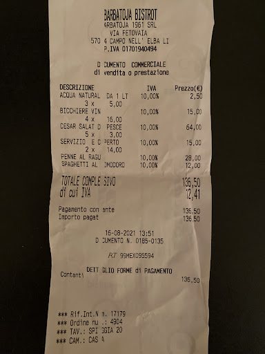 Prima di pubblicare questa recensione ho ritenuto opportuno leggere le altre ,per comprendere se la nostra esperienza fosse stato un caso isolato oppure no ... Purtroppo la risposta è no. Onde evitare che il proprietario risponda con la solita scusa che la recensione è falsa lo invito a comprendere che le critiche possono essere costruttive se si ha la giusta professionalità e la voglia di migliorare il proprio lavoro sempre. E in più voglio dirgli che non si viene a spendere soldi per una vacanza e per il mangiare fuori da km di distanza per mettersi su un piedistallo a giudicare, serve sudore e fatica anche ai clienti che vengono a pagare al ristorante. Ci tengo a precisare che anch'io lavoro al pubblico. Adesso vi descrivo la nostra esperienza partendo da ciò che è stato positivo. La location suggestiva sulla spiaggia ,la qualità del cibo (pesce ) è ottima e la professionalità della cameriera che ha iniziato a servirci è da riconoscere con merito. Purtroppo tolte queste tre cose il resto si commenta da se. Iniziamo con il fatto che una vasta quantità di pietanze elencate nel menú risultano non essere disponibili ,comprese delle semplici verdure , ma abbiamo preso con leggerezza la cosa scherzando con la cameriera descritta sopra. Finalmente scegliamo pietanze disponibili e iniziamo a mangiare... Mio marito ancora non aveva finito l'antipasto che arriva al tavolo il suo primo piatto ... E già qui è discutibile il servizio perché il piatto si fredda ma non contenti hanno ritardato notevolmente l'arrivo della mia pizza mangiando cosi separati. La cameriera carinamente e professionalmente si scusa per il disguido ,viste le nostre rimostranze , e dichiara di offrirci gli amari, cosa poi avvenuta. Tralasciando il costo leggermente esoso dei cibi ( tranne il pesce) e la pulizia mancata del bagno che viene utilizzato tutto il giorno dallo stabilimento ( l'ignoranza degli utenti la fa da padrone) arriviamo al dulcis in fundo. Mio marito ha chiesto come antipasto una frittura elbana che prevedeva calamari, polpo, patate e rosmarino senza la presenza del polpo, il cameriere decide di servire allora una frittura di totani con patate ben pensando di scorporare i prezzi delle due portate che scopriamo alla lettura del conto. Recandoci alla cassa per pagare facciamo notare la questione al ragazzo che cambiando subito espressione del viso dubita della veridicità di ciò che diciamo. Facendo quindi finta che lo scontrino non si possa annullare ( ogni registratore fiscale anche se collegato ormai con l'agenzia delle entrate ha la funzione per l'annullamento) e interpellando il cameriere sulla questione ( ma non era quello giusto ) chiede di risolvere offrendo l'ennesimo amaro. Non volendo noi questa soluzione si decide a malincuore a restiturci l'importo del contorno inserito a parte ,in contanti facendoci pagare comunque con il bancomat la cifra iniziale del conto emesso. Concludo dicendo che nonostante fossimo entusiasti della location e delle pietanze proposte (che non abbiamo poi potuto mangiare ) questo posto ha ancora tanta strada da fare per migliorare, vista anche la concorrenza presente sull'isola . E un ultimo suggerimento al ragazzo in cassa, che l'educazione e la professionalità può ancora impararla invece di giudicare due clienti che ,spaccandosi la schiena come loro , chiede correttezza nel conto a fronte di una...