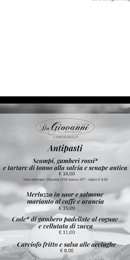 Abbiamo provato per la prima volta questo ristorante una domenica sera per festeggiare l’anniversario di matrimonio e direi che è stata un’esperienza oltre le aspettative! Per cui ci tengo a spendere qualche parola per fare i miei complimenti a tutti coloro che lavorano da Giovanni!