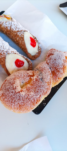 Location carinissima con molto spazio per tavoli e sedie all'aperto e quindi abbiamo sempre trovato un posto disponibile per sederci e gustarci un ottima colazione con prodotti Siciliani di qualità eccellente! Servizio al tavolo anch'esso eccellente e super veloce anche se il locale straripava di gente. Complimenti particolari per il ragazzo che ci ha sempre servito al tavolo la colazione, di una educazione e pazienza infinita! I dolci, la rosticceria, la gelateria e la caffetteria in assoluto la migliore di tutto il paese! E aggiungo fanno il cappuccino cremosissimo, buonissimo! La gentilezza e la cortesia dei gestori ineguagliabile! Consiglio di assaggiare il cartoccio alla ricotta, il cannolo Siciliano, la cassata Siciliana, le sfogliatelle, le genovesi, l'iris e il cornetto al pistacchio! Complimenti a tutto lo staff...