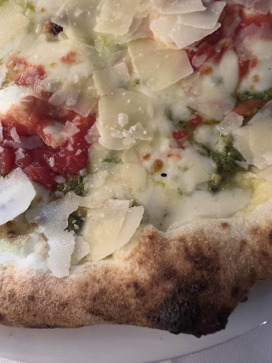 Read morePropone un'ampia scelta di farcitura della classifica pizza e di quelle che sul menù sono indicate come "napoletane", che di fatto sono pizze contemporanee, con il cordone a canotto per intenderci. Le abbiamo provate entrambe, quella contemporanea era un po' passata di lievitazione, farcitura meh (troppo aglio, poco formaggio, ma passata di pomodoro accettabile), indietro di cottura. Quella classica invece non presentava errori di lievitazione dell'impasto o non si notavano per il cornicione quasi inesistente, il condimento invece molto male: i pezzi enormi di pomodoro pelato cacciato dal barattolo e messo sopra certo non possono cuocere nei pochi minuti in cui la pizza è nel forno ad altissima temperatura. Risultato: pomodori crudi, cordone troppo cotto, mozzarella di bassa qualità, il tutto accompagnato da ulteriori pomodorini freschi tagliati a rondelle, che non rendevano come uno spaccato a metà che risulta ancora croccante, né servivano a sostituire l'immangiabile pelato crudo, quindi boh. Non darei tutta la colpa al pizzaiolo ma anche e soprattutto a chi gli ha preparato gli ingredienti nelle vaschette e a chi quegli ingredienti li ha scelti dai fornitori. I piatti di pesce invece ottimi nella freschezza e caserecci nell'impattamento come è giusto. Poca plastica in giro, tutto l'utensileria è riutilizzabile e di buona qualità. Servizio da ristorante, camerieri cortesi e non invadenti, un po' confusionari ma tutto nella norma. Alla cassa personale gentile e accogliente, conto adeguato...