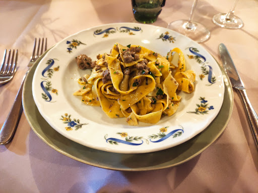 È una di quelle sorprese assolutamente inaspettate. Il locale ha spazi enormi derivati probabilmente dalle scuderie del palazzo dell’hotel accanto. impressionanti i soffitti con le travi a vista ed alcune chicche storiche ancora conservate. Venite accolti in modo estremamente professionale e seguiti per tutta la permanenza con cortesia e puntualità. Insomma, personale di sala ineccepibile. Menù con scelta adeguata alla stagionalità delle materie prime. Raccomandatissima è là tartare, poco lavorata e poco condita per consentire alla carne di esprimere al meglio la sua bontà. Pasta fatta in casa, profumata, saporita e condita quanto basta con materie prime di notevole qualità. Le porzioni sono come piacciono a me, giuste. Ti consentono di partire dall’antipasto ed arrivare al dolce senza quella orribile sensazione di “abbottamento prandiale”: mangi tutto e alla fine del pasto sei non solo sazio ma anche soddisfatto (ed in grado di muoverti autonomamente senza paranchi). Insomma, è il degno ristorante di livello di un degno hotel di livello. Unica pecca: ogni tanto bisognerebbe togliere le ragnatele...