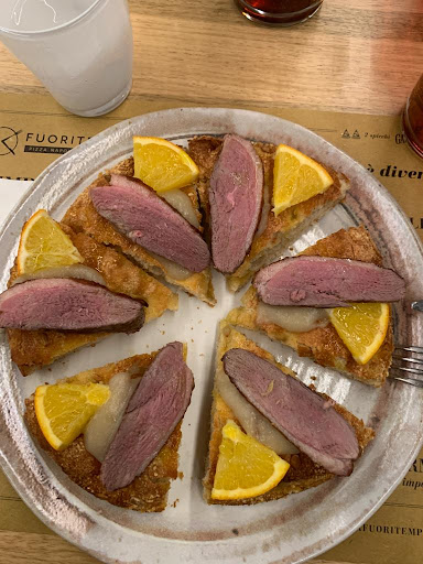 Read moreNon la solita pizza, non la solita pizzeria. Un posto diverso dove gustare una pizza "gourmet" con un cornicione importante. Innanzitutto la pasta, non eccezionale ma molto buona (farina tipo 1 e a lunga lievitazione), ma con degli ottimi ingredienti selezionati con accuratezza. Buoni anche i primi. Non c'è un ampia scelta dal menù, ma solo perché quello che c'è nella lista è selezionato e di qualità. Buona l'attenzione del proprietario nel curare ogni singola portata! Un locale diverso, forse un po freddo al primo acchito, ma poi accogliente, divertente il tema "fuori tempo", trovate voi quello con l'ora giusta... Prezzi apparentemente fuori media, ma sicuramente giustificati dalla qualità, 15/20€ pizza, birra, caffè e 2€ di coperto non giustificati dalla tovaglietta di carta, ma il servizio e la cura del locale si devono pur pagare in qualche modo... Posto sicuramente da consigliare e...