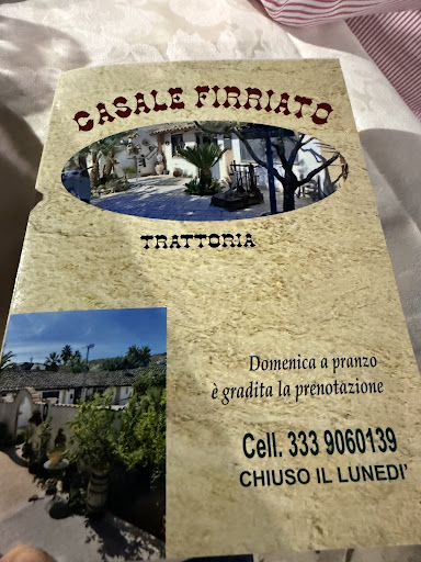 Read morePurtroppo un'esperienza deludente. Il ristorante Casale Firriato, propone piatti rustici legati alla tradizione siciliana, ma il servizio è stato inaccettabile. Dopo aver servito gli antipasti, abbiamo atteso oltre un'ora per ricevere i secondi piatti a base di carne. Il locale era pieno e a gestire tutto c'erano solo il titolare e il figlio: troppo pochi per offrire un servizio adeguato. Eravamo in tanti ha portato delle porzioni da dividere che non sono bastate per tutti.