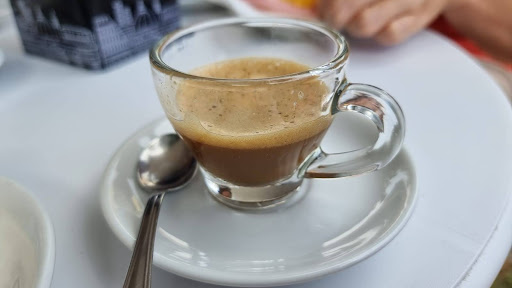 Read moreDuży wybór ciastek, kaw, napojów. Przede wszystkim czysto i przestronne. Toalety pachnące. Za to ogromny plus. Ciężko się dogadać ponieważ nikt z obsługi nie zna angielskiego. Jeśli chodzi o obsługe to za pierwszym razem kiedy tam byliśmy to byla tragiczna kelnerka ktora nic nawet nie probowala zrozumiec co chcieliśmy zamówić i byla dość brzczelna ponieważ kiedy poprosilam ja o łyżeczka do ciasta pokazała zebym jadła rekami. Natomiast za drugim razem byl bardzo mily i profesjolalny kelner. Bardzo smaczne kanapki i...