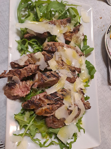 Read moreSituato nella zona pedonale del paese e quindi già si respira tranquillità e sicurezza per i bambini, offre tavoli esterni ed interni ben curati nella mise en place sebbene dicano di essere una trattoria. Gli interni sono fantastici, ben curato l'arredamento, equilibrato il contrasto antico e moderno tra i vari elementi architettonici e l'arredamento ove ho notato la presenza di sculture contemporanee, inaspettato. Dispone di un soppalco con divanetti che crea un'atmosfera calda e familiare. A tavola materie prime di qualità, olio, formaggi e salumi a km 0, pasta fatta a mano se richiesta, ricotta rucola e miele va giù in un fiato, patate crema di formaggio e una ottima finocchiella da provare. La matriciana al pistacchio ,abbondantissima, saporita cremosa, ben tirata, ravioli ricotta e borragine ...troppo buona, tagliata al sangue tenera da rendere quasi inutile il coltello, patate a chips, quelle vere, un tiramisu finalmente come da ricetta vera e non il risultato di una accozzaglia di prodotti assemblati. I prezzi da trattoria, la location meravigliosa, inaspettata, che se fosse stata piazzata al centro di roma avrebbe prodotto un locale di tendenza vero, qualità indiscussa, da ritornarci...