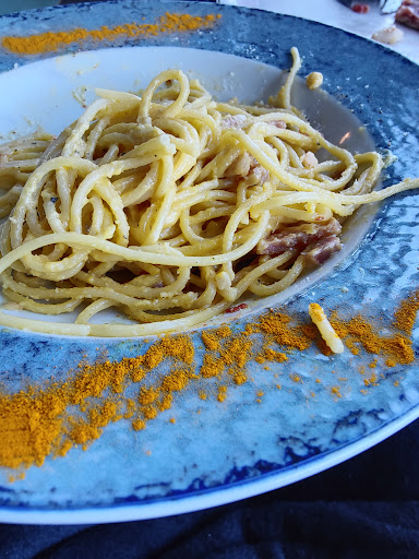 We waited nearly an hour for our food (not very busy) and when it arrived I got carbonara without cheese (neither pecorino, parmeggiano or grana padano), pepper or egg. It tasted very off and we all around the table came to the same conclusion. It was full of mayonnaise(!). As you can see on the plate they used indian spices as decoration and also revealing that they used that to give the yellow/orange color of the dish. The pizza is small, feels premade, non fresh and it has for example canned mushrooms. We didn't finish the dishes and the waiter asked us what was wrong and we explained the situation. The waiter said that "you have to ask for "real carbonara" if you want one because otherwise they will serve a "German carbonara" since they have so many German tourists. It feels like a joke but they really said it. I have no idea how the rating can be so high here on Google. Simply do...