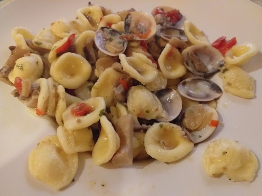 Read moreLlegamos recomendados por la cafetería Garibaldi, ya que todo estaba ya cerrado en Canosa. Ésta fue nuestra suerte, porque así pudimos conocer a estos dos hermanos que han retomado el negocio del padre, hoy jubilado. Amabilísimos, hemos comido como reyes el menú turístico de 14€. El primer plato, han sido tan amables de preparar las orecchiette para mí con almejas, setas y tomate fresco (la mejor pasta que he probado en Puglia) y para mi compañero con setas y carne. Y de segundo, parmigiana de calabaza, una mezcla deliciosa entre la acidez del tomate, el salado del queso y el dulce de la calabaza asada. Han añadido además una guarnición de pimientos asados riquísimos. Y un chupito de limoncello bien fresco con aromas y acidez muy naturales. Gracias fratelli y feliz continuación en el negocio del pater familiar, que debe estar...
