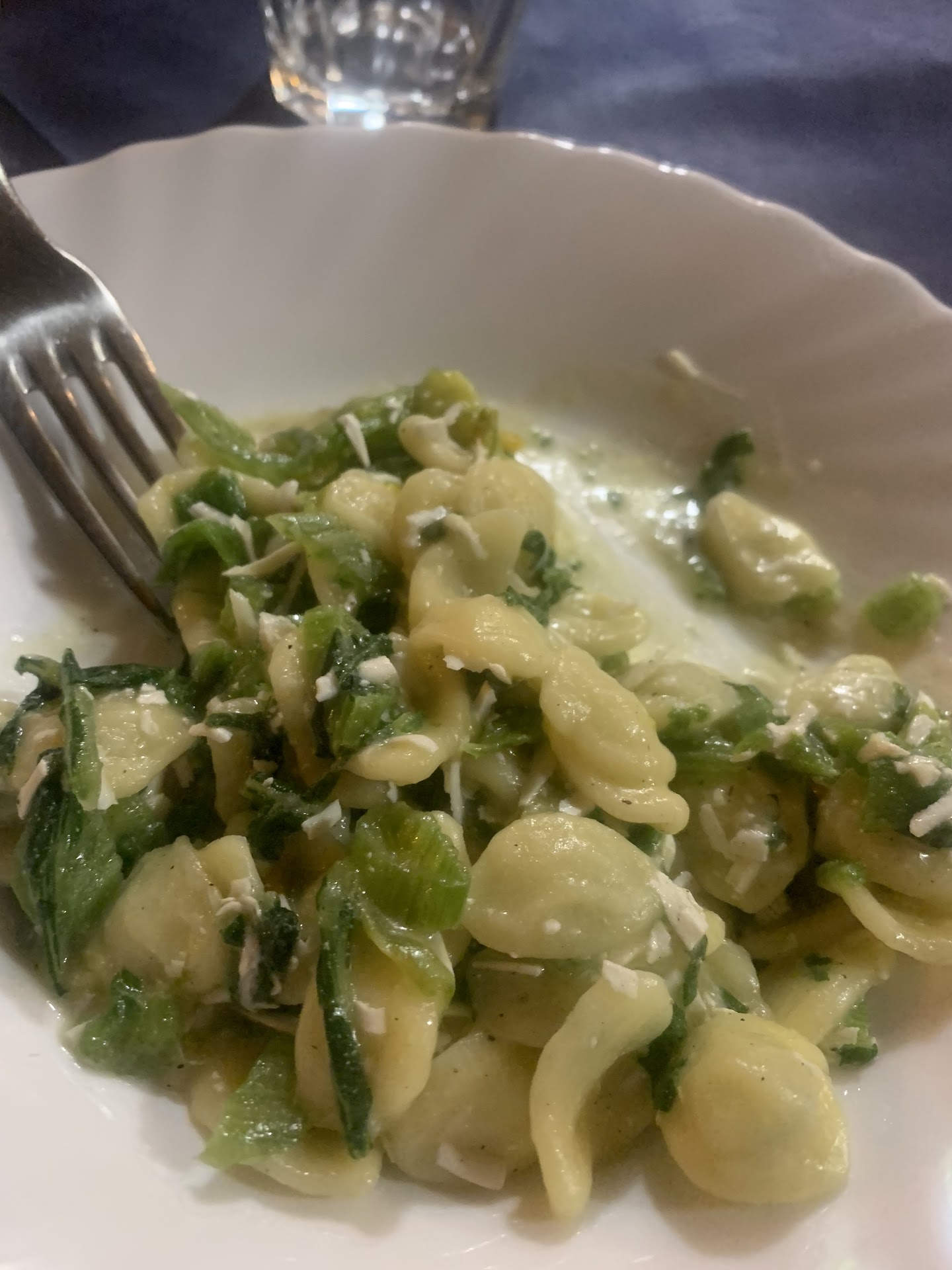 very cosy osteria friendly waiter no menu, recommendations by the waiter, so you better know some italian we had 10 different vegetarian antipasti and orecchiette as primi piatti water and 0,5L vino locale paid 40 euro in total con...