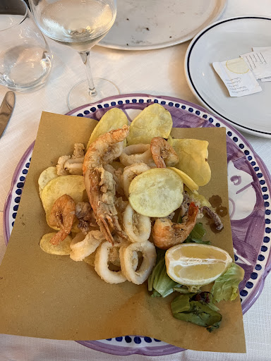 Stasera io e il mio compagno siamo venuti qui per una cena last minute; Devo dire che ho apprezzato il fatto che nonostante sia il sabato sera ci hanno trovato subito un posto. Arrivati lì, ci siamo basati sul pesce vela di albese, posto che consociamo da anni. Se volete mangiare una pizza questo è il posto giusto ma se volete un primo o secondo, non ne vale la pena !!!! Il menù è scarso, sia di antipasti che di primi, non esiste un antipasto di mare ma solo una degustazione che costa 28 euro!!!! Abbiamo preso di secondo una frittura di pesce, quello che è arrivato era: chips di patate per di più ,anelletti di totani, contati 4 polipetti e 3 gamberetti scarsi, vergognoso !!!!! 2 primi, 2 secondi e 1 bottiglia d’acqua, totale 77 euro. CE DI MEGLIO, PIÙ TOSTO IL PESCE...