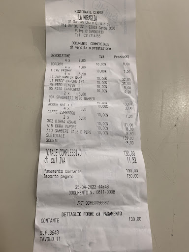 Read moreVasta scelta di piatti della cucina tipica cantonese. L'atmosfera del locale è intima ed accogliente, ma rimane comunque un'eccellente location anche per gruppi di amici e famiglie. Ottimi gli immancabili grandi classici quali ravioli di carne alla griglia, spaghetti di riso con gamberi e verdure e ravioli di gamberi (che qui sono squisiti).Il personale è premuroso ed accogliente, il servizio rapido ed accurato anche negli orari di punta. Possibilità di consumazione ad asporto. Le porzioni dei primi e dei piatti di carne sono sempre abbondanti; le pietanze son sempre ben preparate e appetitose: cito in ordine sparso: galletto fritto all'imperiale, anatra arrosto in salsa di soia (altro piatto tipico del Guangdong che consiglio, è tenerissima e succosa), pollo saltato e anacardi, maiale in salsa agrodolce con verdure, ramen e spaghetti alla piastra anch'essi abbondanti e generosi di condimento; per gli spaghetti si può scegliere fra tre diverse versioni: pasta di grano (cappellini), di soia oppure di riso. Piatti bonus per golosi: gamberoni fritti all'imperiale, capesante, gamberi in salsa chilli, antipasto di medusa e per chiudere......