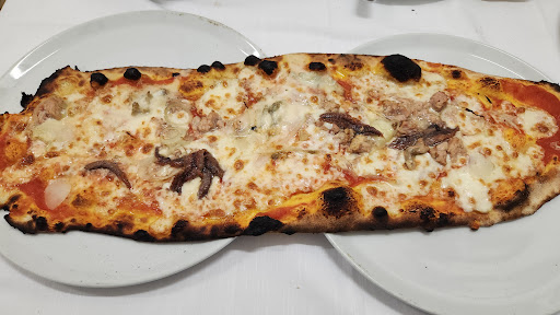 Read moreHo cenato da loro solamente una volta per un compleanno in famiglia. Non so se era una serata no o meno, ma per quanto riguarda la mia esperienza da loro non sono stato completamente soddisfatto. Il posto non è male né come ambiente né come zona, purtroppo ha la pecca del bagno con accesso solamente tramite scala che per l’occasione era completamente bagnata a causa di una perdita d’acqua. In più su due bagni disponibili, uno per gli uomini ed uno per le donne, quello per gli uomini era guasto. Il menù presenta molte scelte di pizza, sia come ingredienti che come tipologia. La mia pizza è arrivata per prima rispetto al resto del tavolo, ma parecchio prima degli altri,e non come l’avevo chiesta, quando ho finito la mia pizza ancora a qualcuno non era arrivata la sua. Mentre un’altra pizza arrivata al tavolo abbiamo dovuto chiede di ricuocerla perché abbastanza indietro di cottura. Sui dolci nulla da dire buoni, purtroppo però su un totale di 5 dolci richiesti 1 lo hanno dimenticato, riuscendo a farcelo avere dopo averlo ricordato al personale di sala una paio di volte. Tempistiche e servizio da rivedere.