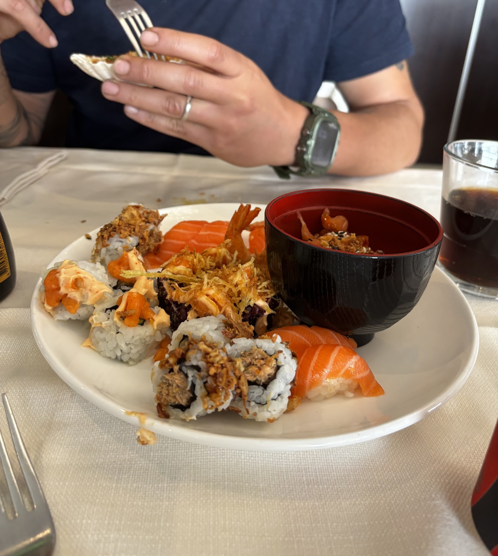 Read moreMi è piaciuto davvero molto, ad iniziare dalla location con ampio parcheggio, molto ben curato nei dettagli, pavimenti in marmo , ben organizzato ed arredato. Ambienti molto spaziosi ben illuminato e Molto pulito. C'è anche all'interno una zona per bimbi chiusa dove poter farli giocare senza arrecare disturbo a gli altri commensali. Il personale è molto gentile e disponibile , cè anche uno steward addetto all' ingresso,ho apprezzato con piacere che ti apre la porta quando entri o esci. Una cortesia in più che fa molto piacere. Il cibo è veramente eccezionale su ogni punto, si trovano piatti di ogni tipo, per chi come me ama il Sushi si trova una vasta scelta tra cui sashimi e tartare di salmone anche a pranzo. La griglia offre una vasta scelta di carne pesce e verdure senza limitazioni di pezzi da prendere. Vasta anche la scelta di dolci e gelati o sorbetto. Qui non è espressamente indicato che gli sprechi si pagheranno,ma Chiaramente si lascia intendere al buon senso dei clienti. Le bibite non sono incluse nella formula all you Can eat. Ho molto apprezzato i camerieri che girano tra i tavoli con almeno 2 tipi diversi di risotto e con diversi tipi di carne alla griglia e ananas arrostito. Nel complesso nettamente migliore di altri all you Can eat. Il migliore! Ci...