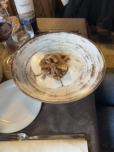 Read morePosto caloroso e molto accogliente, i titolari ti ricevono con una gentilezza estrema. Lo chef ti da il ben venuto con una gradevole crema di patate e granella di acciughe soffritto (spero di ricordare bene gli ingredienti!), Come primo abbiamo mangiato un piat di Raviolo aperto, sfilacciato di maiale, spuma al parmigiano e un piatto di Raviolo aperto, sfilacciato di maiale, spuma al parmigiano, acciughe del Cantabrico. Come secondo un piatto di Brasato di manzo, polenta mantecata, abbiamo completato con un dolce a base di Variazione di panna cotta, biscotto, gelato allo yogurt. Il sommelier ci ha proposto con molta professionalità un buonissimo Sassella della Valtellina. Superfluo dire che ogni cura dei dettagli negli ingredienti era a dir poco azzeccata, mai mangiato abbinamenti così tanto particolari quanto gustosi e indescrivibili. Dettaglio non indifferente, nel menù vengono indicati in modo dettagliato tutti gli ingredienti presenti nelle varie pietanze in modo da poterne individuare eventuali allergeni per chi è intollerante. Faccio i miei più sinceri complimenti a tutto lo staff e posso soltanto dire un arrivederci poiché sono molto sicuro che l'Antica Osteria Gocce di Sapore è sicuramente uno di quei posti in cui recarsi ogni qualvolta che ci si trova da quelle parti. Rinnovo i miei complimenti e grazie della conviviale ospitalità....