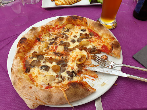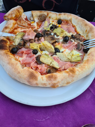 About the food and drinks: We ordered water, beer and 2 pizza's. The water was not cold at all (for 3 euro's or something I expect it to be cold), the Pizza Salame had 5 small slices of salame, so it looked more like a Margerita, and the Pizza Funghi was very wet and soggy.
