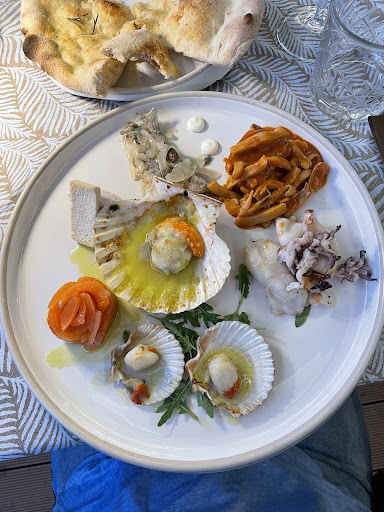 Siamo stati a Caorle nell’ultima settimana di agosto e abbiamo deciso di provare a pranzo questo nuovo ristorante del campeggio Punta Falconera, ma accessibile anche a chi non alloggia lì. Abbiamo mangiato degli spaghetti con le sarde e il finocchio spaziali!! In settimana ci siamo stati altre 3 volte a cena e abbiamo sempre mangiato divinamente. Qualità del pesce alta e il cuoco giovane sa il fatto suo! Cura e ricercatezza nell’abbinamento di gusti e sapori. Non è come molti ristorante che tendono ad abbondare con salse e oli per coprire i sapori, anzi! Per esempio, abbiamo assaggiato dei moscardini in insalata di sedano semplicemente fatti al vapore (tenerissimi) e se volevi aggiungevi tu il condimento (io li ho mangiati al naturale ed erano saporitissimi). Pan pizza assolutamente da provare! E anche la location...