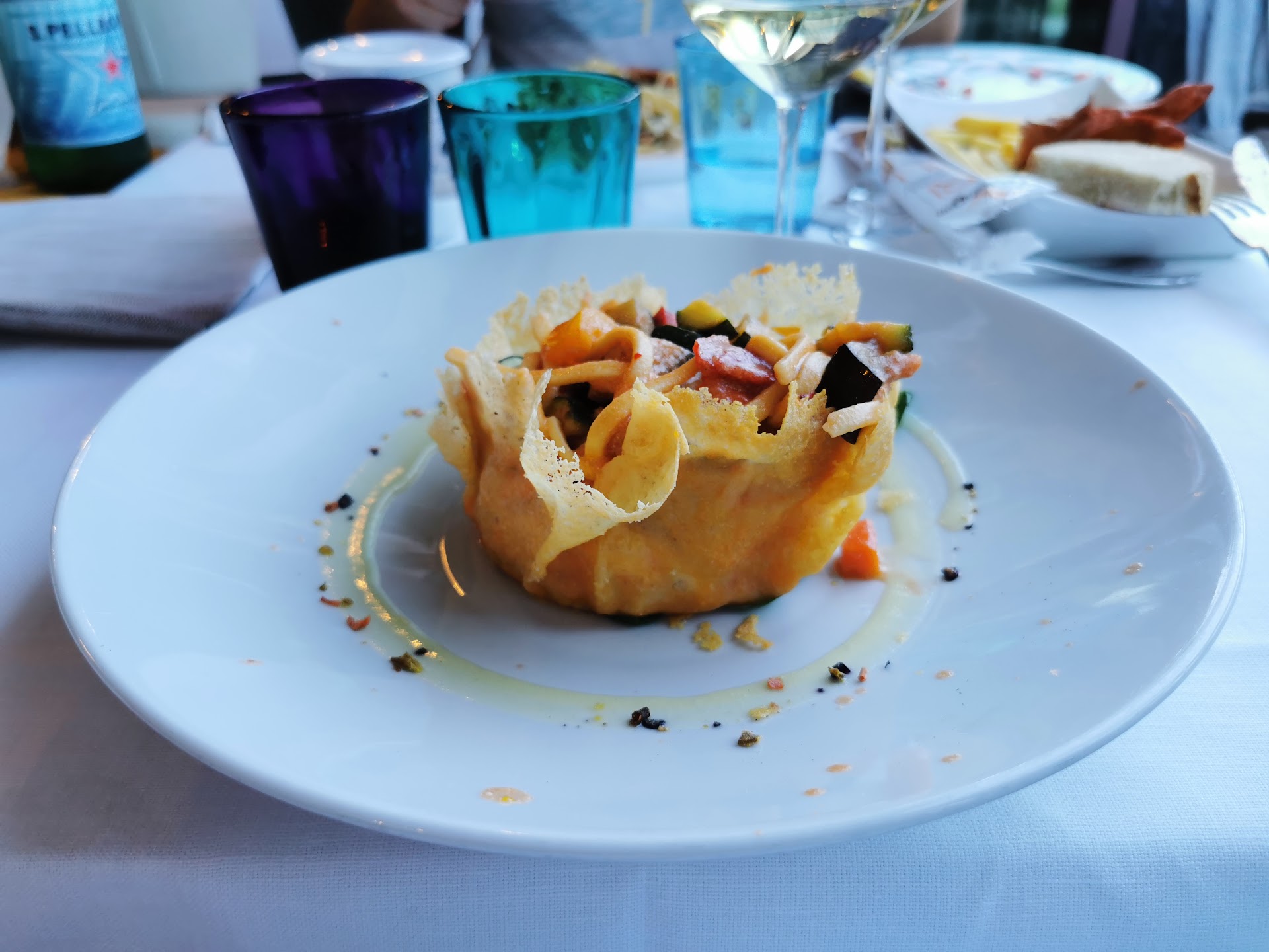 Read moreFood was good, but thank goodness we went with an Italian friend because they tried to pull a fast one. Our group of 5 sat down, and 10 minutes later a group of 7 sat at a table next to us. They all got served before us. Then, they only served our Italian friend. Wait 15 minutes, and my son and husband get served. Wait another 15 to 20 minutes, my daughter finally gets served. In the meantime, we ate some of my husband and son's food because we were really hungry. My food still hasn't showed up (spaghetti ragu which I don't recommend). I had to wait another 15 minutes to get my food. Everyone was done eating by then. Luckily our Italian friend was complaining and giving them a piece of her mind. One gentleman showed up and offered us either a bottle of wine or dessert to say that he was sorry. We took the dessert, which was really good. When it was time to pay, they charged us for dessert!!!! Our Italian friend started causing a scene and finally they said "we take off". Yikes! They offered dessert as a piece offering then tried to charge us for it. So, be careful and make sure you speak more than basic italian when you go there. That said, everyone's food was absolutely delicious, except for my spaghetti ragu. The tiramisu was excellent! Prices were reasonable. Location is beautiful. It's a shame that they tried to slip one by us or they would have...