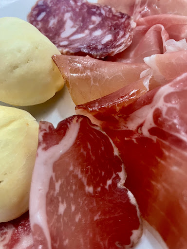 Aspetti positivi: salumi abbondanti, buono il culatello la frittura pareva ben fatta, sia per lo gnocco fritto, sia per il fritto misto servizio in sala di ragazze...