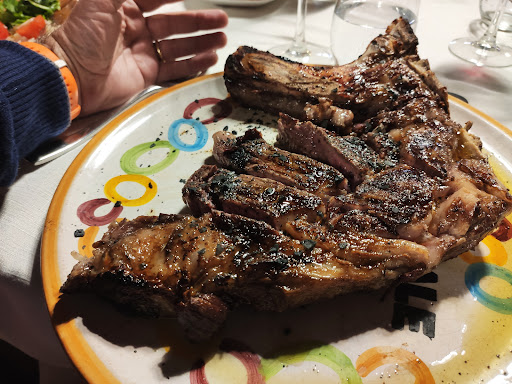 Read moreLocale esteticamente accattivante, con personale all'ingresso molto cortese, vista sulla piazza davanti al locale molto suggestiva, ideale per una serata all'insegna della tradizione e della tranquillità. Il servizio si è svolto molto rapidamente, passando dall'antipasto Fiori di Zucca ripieni (fritti) su crema di patate estremamente leggero ed esteticamente invitante, ottimo biglietto di ingresso per il secondo: Entracotte (cottura richiesta al sangue adeguatamente rispettata) su consiglio del cameriere, che mi ha guidato alla scelta del taglio giusto di carne. Il piatto si presenta molto bene, accompagnato da un contorno che non sfigura con l'alto livello del taglio di carne servito (patate al forno molto croccanti e saporte), arricchito con Grana tagliato a scaglie e pomodorini su un piccolo letto di rucola.