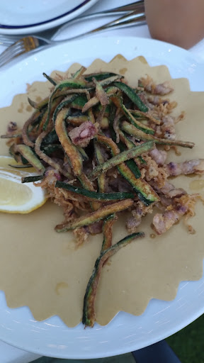 Siamo arrivati alle 14:15, in ritardo come previsto. L'aperitivo iniziale, servito nella sala con affaccio sul giardino, era scarno, composto da bocconcini di mozzarella e frittelle, accompagnato da prosecco o spritz – un inizio appena sufficiente.