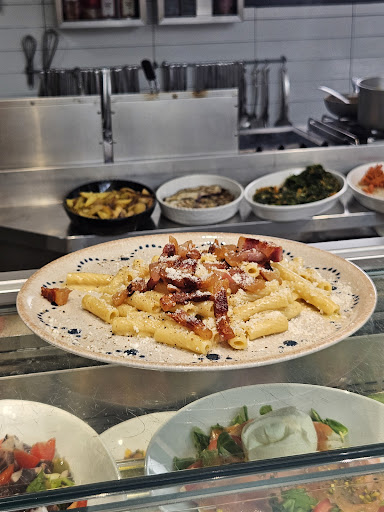 Read moreAmbiente confortevole, personale molto gentile. Possibilità di pranzare con cibi già pronti o con cibi espressi. Un fattore positivo è la cucina a vista. Ha una zona interna con tavolini ma anche una zona esterna verandata. Io ho preso verdure a vapore e un trancio di salmone al forno. Il salmone molti gustoso e le verdure ben cotte. Nel locale è presente una tabaccheria ed è posizionato in...