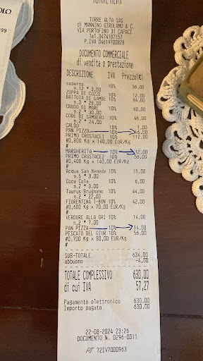 Read more🇮🇹 🇬🇧 🇫🇷 🇩🇪 🇪🇸 🇮🇹 Sono stato al Torre Alta per una cena speciale e sono rimasto incantato! L'ambiente è davvero suggestivo, con quella torre antica che crea un'atmosfera unica. Ho mangiato un piatto di pesce freschissimo, cucinato alla perfezione, e la musica soft di sottofondo ha reso l'esperienza ancora più piacevole. Il personale è stato gentile e attento, e mi sono sentito coccolato dall'inizio alla fine. Consiglio vivamente questo ristorante per una serata romantica o per festeggiare un'occasione speciale. 🇬🇧 I went to Torre Alta for a special dinner and I was enchanted! The atmosphere is truly suggestive, with that ancient tower that creates a unique atmosphere. I ate a dish of very fresh fish, cooked to perfection, and the soft background music made the experience even more pleasant. The staff was kind and attentive, and I felt pampered from beginning to end. I highly recommend this restaurant for a romantic evening or to celebrate a special occasion. 🇫🇷 Je suis allé au Torre Alta pour un dîner spécial et j'ai été enchanté ! L'ambiance est vraiment suggestive, avec cette tour ancienne qui crée une atmosphère unique. J'ai mangé un plat de poisson très frais, cuisiné à la perfection, et la musique douce en fond sonore a rendu l'expérience encore plus agréable. Le personnel était aimable et attentif, et je me suis senti chouchouté du début à la fin. Je recommande vivement ce restaurant pour une soirée romantique ou pour célébrer une occasion spéciale. 🇩🇪 Ich war für ein besonderes Abendessen im Torre Alta und war begeistert! Das Ambiente ist wirklich beeindruckend, mit diesem alten Turm, der eine einzigartige Atmosphäre schafft. Ich habe ein Gericht mit sehr frischem Fisch gegessen, das perfekt zubereitet war, und die sanfte Hintergrundmusik hat das Erlebnis noch angenehmer gemacht. Das Personal war freundlich und aufmerksam, und ich habe mich von Anfang bis Ende verwöhnt gefühlt. Ich empfehle dieses Restaurant wärmstens für einen romantischen Abend oder um einen besonderen Anlass zu feiern. 🇪🇸 Fui a Torre Alta para una cena especial y quedé encantado! El ambiente es realmente sugestivo, con esa antigua torre que crea una atmósfera única. Comí un plato de pescado muy fresco, cocinado a la perfección, y la música suave de fondo hizo la experiencia aún más agradable. El personal fue amable y atento, y me sentí mimado de principio a fin. Recomiendo encarecidamente este restaurante para una velada romántica o para celebrar una...