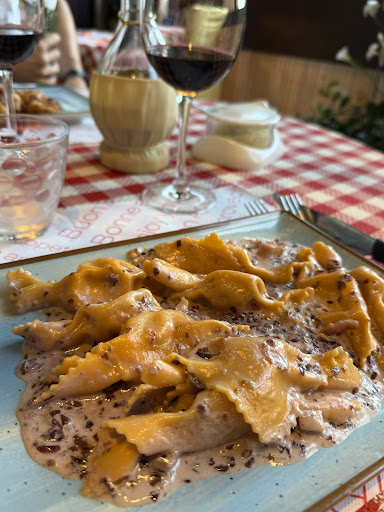 Read moreCi sono stato ieri sera a cena,in 10 persone,siamo stati decisamente male, Il il personale è scortese,abbiamo chiesto 7 porzioni di tordelli,ci hanno detto che ne avevano 2/3 porzioni,un commensale ha esclamato “è roba da matti” (come voler dire,vai a cena in un posto e non hanno nemmeno quello che hanno scritto sul menù) e la cameriera si è anche permessa di rispondere in maniera poco educata,per fortuna comunque che ne avevano solo 3 porzioni perché non erano nemmeno buoni! L’altra cameriera ci ha tolto anche dei calici per apparecchiare un altro tavolo,ovviamente presi e messi sull’altro tavolo,senza nemmeno pulirli. Il vino rosso era bollente,uno di noi ha provato a chiedere se era possibile averne di più fresco,la solita cameriera simpatica ci ha detto che il vino rosso non si mette in frigo,vero,ma nemmeno in forno! Era imbevibile! A stento siamo arrivati alla fine del secondo,e da qui non siamo stati più presi in considerazione,ne a chiederci se volevamo un caffè ne un dolce,dopo più di mezz’ora senza essere calcolati,ci siamo alzati e siamo andati a saldare il conto senza prendere ne caffè ne dolci. 2 taglieri per 4 persone (oggettivamente i salumi erano veramente buoni) 3 tordelli 2 ravioli spinaci con salsa di noci 2 tagliatelle alla boscaiola 4 tagliate (di cui una richiesta senza pecorino ma arrivata col pecorino) 1 baccalà 5 fritto di pollo e coniglio 7 patate arrosto (ho sentito altri tavoli che dopo di noi avevano finito anche le PATATE!!!!) Vino e acqua 280 euro Abbiamo pagato anche il caldo che c’era,e nemmeno un ventilatore a smuovere un pochino l’aria Vabbè,esperienza negativissima,ora che lo sappiamo non ci...