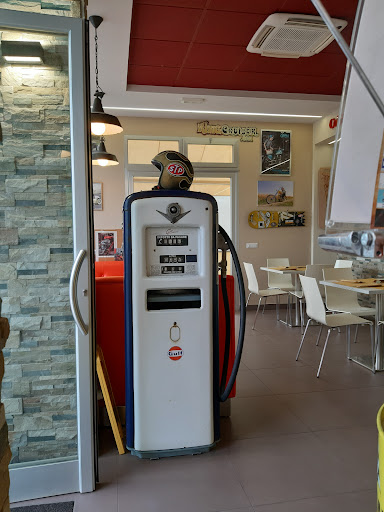 This pizzeria was a welcome relief to us visitors and we were greeted to a warm conversation from the owner Simone who happens to be a lover of bikes and all things American. Infact, New York! He made our pizzas in less than 15 minutes, 6 of them and they were pretty good. This used to be an old mechanic shop which he converted into a diner/pizzeria/restaurant/ outdoor space. Friendly guy, I must say. The host girls were perhaps a little shy and avoided eye contact when they found out we don't speak Italian. Something definitely excusable. If you happen to be caught between meals in in this town, and refused service, having to wait until dinner...