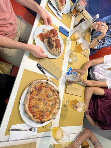 Read moreSiamo stati a mangiare in questa pizzeria dopo aver letto le recensioni, e forse sono un po' ingeneroso con questo locale, perché la mia pizza, salamino piccante tutto sommato era piuttosto buona, forse sarebbe dovuta essere un po' più piccante, ma buona. Antipasto con affettati di qualità, molto buona la focaccia "pane" che li accompagnava. Locale carino, in stile retrò, dentro si stava al fresco, personale gentile, proprietario simpatico ed eccentrico. Non fanno pizze baby per i bambini. Prezzi giusti. Tuttavia - da qui le tre stelle - è arrivata ad uno dei miei commensali una focaccia salsiccia e stracchino un po' opinabile, che gli ha fatto perde un po' di punti, dava l'impressione di essere un calzone schiacciato e al confronto delle altre pizze della tavolata ci ha lasciato un po' perplessi non solo per l'aspetto ma anche per il gusto. In definitiva, pizza ed antipasti si, focacce no. A mio avviso, è una buona pizzeria per chi abita in zona o è...