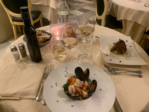 Read moreParlando del locale, dal fuori non ti aspetteresti il dentro, in compenso ampio parcheggio e accesso per disabili che non sempre trovi, come dicevo entrando vieni subito accolto da personale garbato e qualificato la sala molto bella ed elegante, ma dal fuori non ti aspetteresi, cibo di prima scelta per quello che mi è stato servito, anche se non ho bevuto valida e ampia scelta di vini, non gli ho dato 5 stelle, solo perche secondo il mio umile giudizio, il menu mancava di uno o due piatti in più sia sui primi che sui secondi, salvo che avendoci pranzato, poi per la sera non usino un altro menu con quel più che dicevo. Comunque cio che ho mangiato era di qualità e quindi anche il conto rispecchiava cio che ho mangiato, i vini come detto visto che era pranzo non li ho assaggiati, ma ho visto vari buon vini dalla loro esposizione. Comunque tornerò di sera e vedro se aggiungere la quinta stella. Locale moto consigliato per una cena di coppia o in...