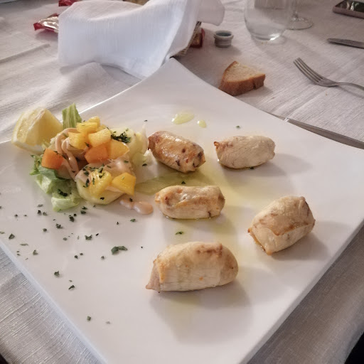 Read moreProvo questo ristorante una domenica dei primi di settembre .Il locale si presenta accogliente , spazioso e abbastanza elegante con tavoli interni e all'aperto. Dal menu ordino un piatto di paccheri al pesce , un calice di Vino Bianco e dell'acqua frizzante . Sono servito nei tempi giusti. Il primo è abbondante con la giusta cottura della pasta e molto condimento. Buono di gusto vista la giusta qualità dei prodotti. Il calice di vino invece è di scarsa qualità, da migliore sicuramente visto che ha lo stesso costo del mezzo litro. Dovrei dare una stella in meno per questo ma compenso con la disponibilità e gentilezza del personale. Alla fine per il tutto, compreso il servizio, pago 25 euro. Prezzo nella media per quello ordinato. Piccolo inconveniente qualche puntura di zanzare, malgrado la citronella (poca?) ma lo giustifico con il troppo caldo e il verde che circonda i...
