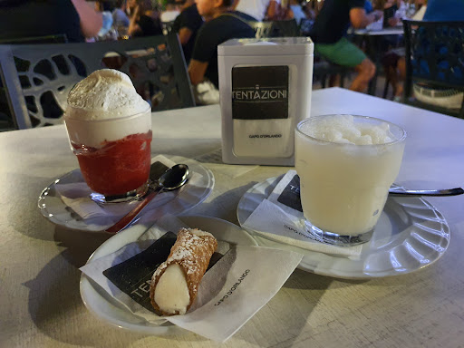there at least 3 locations of tentazioni in cap dorlando. this the best place to seat outside. the other location has a briad choice of pastries. try granito n 10 different tastes and then cecrem in briche, sounds odd but is is the traditioanl breakfast in sommer, tasty...