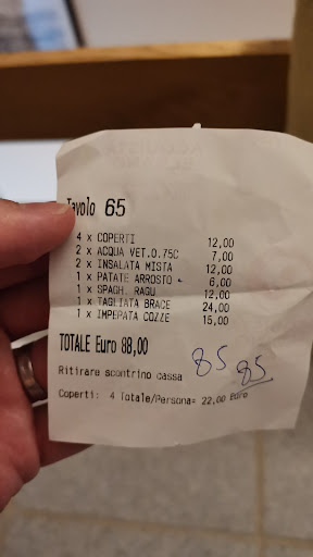 Food quality and environment are average compared to other restaurants in Elba. But I have to say the price is higher than average. A small portion of baked potatoes,which is not included with a piece of steak, costs EUR 6. A small portion of salad costs also EUR 6, which is comparable to the salad in a folk restaurant in Switzerland. We visited the restaurant with our little one, who basically only used a high chair without requesting any tableware. Still we had to pay EUR 3 for his seat, the same to all others who actually used tableware. Alright, we respected this may be the ''Italian tradition''. What really upset us was the honesty or/and the counting capability of the staff (or the owner? ). Firstly, they charged us 7 pieces of table service fees, while we were only 4 persons including the 1.5 years old. Moreover, we only ordered a bottle of water, while they charged us two bottles. After I corrected him, he wrote on the receipt EUR 85, although he definitely knew one bottle of water costs EUR 3.5. 88 - 3.5 = 85? Pay your attention to the bill and their honesty when you visit...