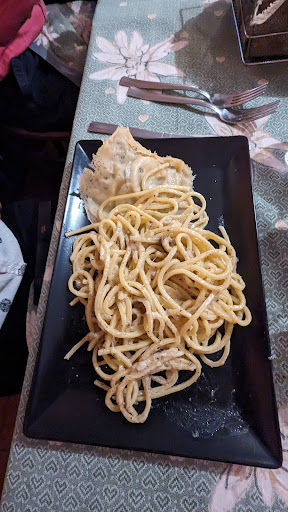 Mamma mia che pranzo! Lo scorso martedì sono andata a pranzo con la mia famiglia dopo diversi anni. Abbiamo preso 2 antipasti misti in 5 e sono stati non solo sufficienti per tutti ma anche buoni e vari: formaggio, affettati, verdure, ceci, fagioli co sarciccia e cotiche. Poi i primi, assolutamente da non perdere le fettuccine fatte in casa con porcini in quantità e tartufo nero grattato sopra al momento. Mio figlio ha chiesto il bis! Io ho preso le pappardelle al cinghiale, belle saporite. Poi con mia cugina ci siamo divise un arrosto misto, ma io me lo sarei pure mangiato tutto da sola, ottima carne, due contorni, poi la panna cotta ai frutti di bosco, super, mio figlio ha preso sia tiramisù che crema al caffè, tanto per non farsi mancare niente. Amaro abbruzzese e caffè, 35 euro a...