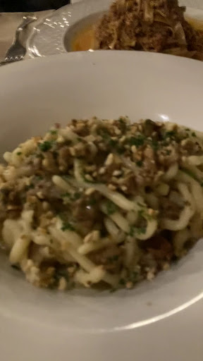 Tutto clamorosamente ottimo. Uno dei migliori ristoranti dove ho mai avuto il piacere di mangiare. Personale gentilissimo a trovarci un tavolo in una domenica affollata anche se non avevamo prenotato (cosa che raccomando di fare perché non si è sempre così fortunati). L'antipasto misto di salumi e formaggi consiste in un tagliere enorme, ma anche di grande qualità, che da solo basterebbe a sufficienza a sfamare due persone. I primi erano entrambi strepitosi, la pasta con salsiccia, nocciole e pomodorini e i ravioli di carne chianina con tartufo buoni da mettersi a piangere. Porzione non abbondante per questi ultimi. Anche il filetto di maiale con lardo era pazzesco e i contorni altrettanto buoni, sembrerà una banalità ma le patate al forno erano fatte a regola d'arte, talmente buone nella loro semplicità da rendersi memorabili. Anche il dolce era molto buono, nonostante fosse finita la crema pasticcera ci hanno proposto di "ripiegare" sulla ricotta, ottima anch'essa, toccherà tornare. Prezzi ragionevoli per un'offerta di così alta...