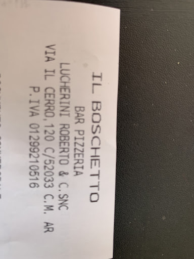 Wir lieben die italienische Institution der Bar. Die gibt es so in Deutschland nicht. Im „Boschetto“ kann mensch sehr guten Cappuccino, köstlichen Spremuta (frisch gepressten Orangensaft) und ausgezeichnete Aperitifs genießen. Dazu immer eine feine Auswahl an süßem Gebäck zum Cafè und pikant belegten kleinen Panini. Nicht jeden Tag, aber wenn sie es anbieten: sehr leckere Pizzen (100 Sorten), Vorspeisen, Desserts; manchmal spezielle Gerichte wie hausgemachte Lasagne oder besondere feste Menüs (Neujahr, Ostern, Ferragosto, andere Anlässe). Das Personal an der Theke und im Restaurant ist sehr freundlich, flink und charmant, der Koch/Pizzabäcker ist ein Original, immer zu Scherzen und Späßen aufgelegt. Ein guter Ort, um sich mit Freunden zu treffen und den Nachbarn und Einwohnern im Ort...