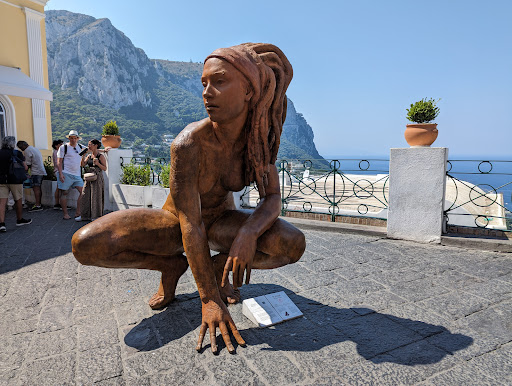 This is a beautiful and perfect location to have lunch. We visited in third week of August/23 and it was HOT. Immediately at the exit of the Funicolare (funicular tram) the views of the Marina Grande and the surrounding sea and mountains and town are amazing. We had a couple of sandwiches (panini) and a couple of beers for a reasonable price considering this is one of the most touristic and expensive areas of Italy. The sandwiches were fantastic, we had to share both of them to get a full appreciation without eating too much. The beer was the usual Peroni, which is always great as a refresher without getting choosy. The service was pretty good, fairly quick, and as it was quite busy they didn't waste any time on chit-chat, but no less very courteous and friendly. We would have stayed all day just to enjoy the breeze and the sun, conversation with the locals and other tourists (people are so happy and warm while on vacation in an idyllic place LOL), and just relax in the being there. But Italy and Capri are too full of beauty to sit too long, so we moved on down to the Piazzetta, and Marina Piccola to...