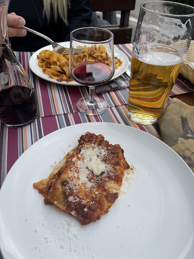 This was the worst experience I’ve ever had! We ordered the cheese board, and to be honest, my blind grandma would make better looking one than this one! Also the cheese was old and it was only one type of cheese, no selection. And the bread was rock hard I could kill someone with this bread. Now to the lasagna, there was almost no meat and plating was terrible. When we went pay, they charged us with €5 extra for the service like for what service there was almost none. I’m sorry but I don’t want anybody to lose their money on this restaurant. If any chef put this in front of me in my hometown I would go to the kitchen and tell him if he is kidding me, because it was that horrible experience. I would not wonder if the lasagne were from nearby Lidl.