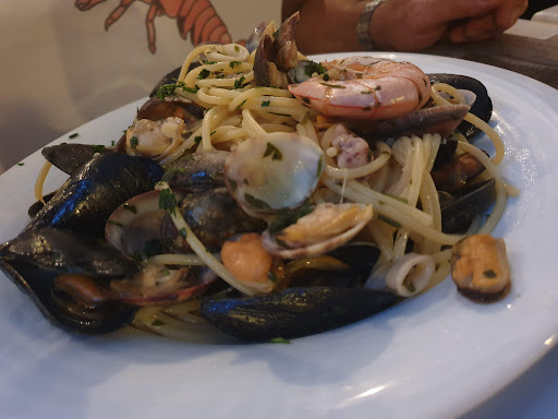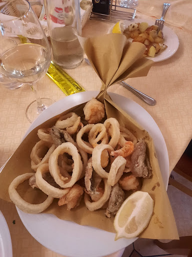 Read more4,5 💫Siamo stati in questo ristorante a pranzo, come tappa durante un viaggio. Eravamo in 7, abbiamo mangiato all’interno del locale. Pulitissimo. L’ambiente è molto accogliente, mi sono piaciuti molto i tovaglioli rossi! Il cibo servito é di buona qualità. É presente tavola apparecchiata con tovaglia, il coperto è di 2€. Io servizio é stato veloce, circa 15 minuti. Abbiamo preso sia primi piatti che secondi e siamo soddisfatti. I prezzi sono abbastanza in linea con un ristorante di pesce: un primo dai 12 ai 15€, il mio fritto misto 18€ porzione abbondante: gamberetti e alici buone, gli anelli invece non perfetti. gnocchetti molto buoni. Zuppa di pesce fantastica servita anche con super bavaglino! Anche i dolci ci hanno soddisfatto, tranne una delle torte che forse era un po’ meno buona. Tutto sommato è stata una buona scelta, lo...