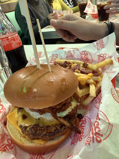 Per quanto riguarda il cibo che ci è stato servito, la qualità era molto buona, nulla da dire: piatti gustosi, porzioni generose, in linea con lo stile da diner. Non abbiamo preso i dolci perché eravamo sazie, ma il menù era vario e interessante.