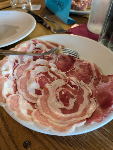 La prima volta invece abbiamo provato l'agriturismo, il ristorante. Menù fisso 35 euro compresa acqua, vino, amaro caffè e gelato. 15 euro i bambini. Il prezzo è ottimo, davvero. Comprende oltre a quanto già detto un buon antipasto di ottima qualità, due primi e due secondi. Nelle foto troverete il menù che però a mio parere andrebbe un po' cambiato durante l'estate. È un Menù decisamente invernale. Faceva tra l'altro molto caldo, davvero tanto e l'area condizionata, era parecchio in affanno perché non si respirava un granché all'interno della sala. Il servizio non è stato tra i migliori. Non sono solito parlar male dei camerieri che fanno un lavoro davvero duro soprattutto quando il caldo si fa sentire, e non lo farò adesso ma non è stato come me lo aspettavo, sotto le aspettative. Il cibo, seppur invernale, era ottimo. Il risotto fantastico. Lo stracotto pure.