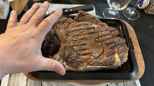 Il personale sembrava confuso come una slitta in estate. Ora stiamo ancora aspettando di vedere cosa ci faranno pagare – abbiamo ordinato una bistecca spagnola da 50 €, ma ci è arrivato qualcos’altro. Incrociamo le dita.