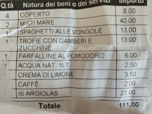 Locale di medie dimensioni, molto rumoroso se affollato, per capirsi con quello di fronte è necessario urlare. Dopo 20 minuti abbiamo chiesto noi acqua e pane (mai arrivato) ad un cameriere, mentre aspettavamo di eseguire l ordine. Quando arrivano per prendere la comanda (forse addirittura il proprietario) per prima cosa sgrida la bambina di 5 anni che stava cambiando colore al led delle piccole lampade da tavolo che loro stessi hanno messo come centro tavola, facendo notare costassero 80 euro, di riferirlo alla mamma, sottintendendo che ce le avrebbe fatte pagare in caso di rottura. Noi genitori e ospiti li presenti, allibiti. Decidiamo di restare comunque nonostante l inizio scortese, a fine cena una delle ospiti chiede se avessero frutta al posto dei dolci e se potesse avere un mix, il cameriere va e torna dalla cucina dicendo che era possibile avere una sorta di macedonia. Dopo 5 minuti il presunto proprietario (sgridatore di bambine) torna dicendo in maniera scortese all ospite che per farle la macedonia richiesta avrebbe dovuto aprire apposta per lei un melone una anguria e una ananas, cosa che non voleva fare e che scegliesse quindi un frutto che le avrebbe servito. Ha dovuto scegliere 4 triangolini di anguria. Il conto non era proporzionato alla serata e al trattamento considerando anche il fatto che nella frittura di pesce non si sono neanche degnati di levare l intestino ai gamberi, servendoli con le loro feci e sabbia all interno, ho dovuto pulirli io alla bene meglio mentre mangiavo. Purtroppo non torneremo. Sconsiglio a famiglie con bimbi e amanti delle...