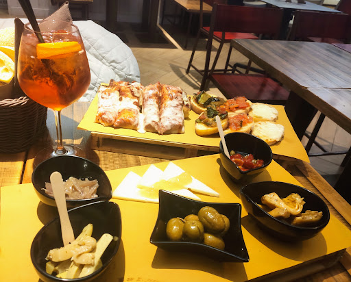 Esperienza abbastanza negativa. Prezzi alti e il servizio potrebbe migliorare. Abbiamo prenotato un sabato sera, per un aperitivo. Essendoci molto vento abbiamo chiesto in anticipo al momento della prenotazione se ci fosse la possibilità di stare dentro e ci hanno confermato che avrebbero aperto la sala al chiuso se avesse continuato a fare molto vento. Peccato che una volta arrivati in malo modo ci è stato detto che saremmo dovuti stare fuori, che i tavoli all'interno erano già prenotati e che non potevano accontentare tutti. Inoltre, sabato sera, ordiniamo uno spritz e non lo potevano fare. Insomma, abbiamo finito di fretta e furia ciò che abbiamo ordinato e abbiamo cambiato...