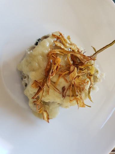 Depistato da recensioni assurde mi sono fermato a pranzo. Menù su un cartellone. Non specifica costi vari come coperto. Ho preso un piatto da 12€, un dolce da 6€ un quartino di vino sfuso ed il conto fa 28€...le faccio 25 ma non le faccio fattura questa è l'imposizione. Quindi un menù mediocre, un bicchiere di vino sfuso 10€? E con arroganza non vuole fare fattura. Forse hanno 1 stella michelin e non me ne sono accorto? Vivo al ristorante tutti i giorni da oltre 50 anni e penso che locali debbano...