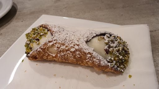 The cannoli was amazing with delicate ricotta cream and pistachios.