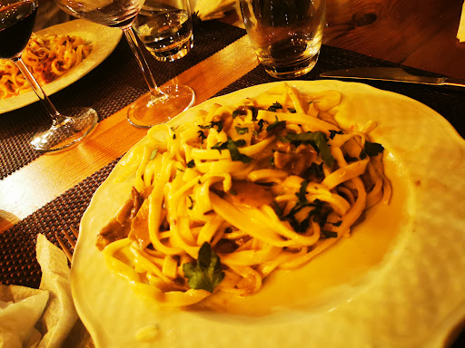 Per caso all'ultimo istante con un amico, decidiamo di andare a cena in un posto dove la tradizione si possa respirare in ogni istante e luogo, scelta mai più azzeccata, veniamo accolti da gente, è strano da dirlo di questi tempi, sorridente e che ti mette subito a tuo agio, come se andassi a trovare un amico di famiglia.. Al tavolo la ragazza che si occupa delle ordinazioni ci consiglia da ottima padrona di casa, cercando di metterci nelle condizioni di fare un percorso che possa lasciarci piacevolmente soddisfatti, cosa che le è perfettamente riuscita, chapeaux! Antipasto della casa rinforzato con varie tipologie di prodotti locali, capocollo, pancetta tesa, pecorino pepato, olive infornate, polpetta al sugo, pecorino, ricottina, Bruschetta con pomodori secchi, crostino con formaggio fuso, peperone ripieno, melanzana con concasse' di pomodoro e formaggio fuso, per poi proseguire con grana e vellutata di peperoncini e poi ancora polpette di carne, melanzane e Crocchetta di patate, spero di non aver dimenticato nulla, ma una cosa di certo me la ricordo, gusto come dalle migliori nonne calabresi... Veniamo alla pasta, per me una tagliatella ai Funghi che neppure fa in tempo a freddarsi che già è finita, il mio amico, ha optato per pomodori secchi e ricotta, beh anche la sua degna di un favoloso plauso, il tutto accompagnato da una bella bottiglia di rosso locale (freddo) già solo per questo mi avete conquistato, (perché chissene frega che il Rosso si beve a temperatura ambiente) e per finire un pan di Spagna con crema al limone e un sorbetto anche questi fatti a regola... Beh sinceramente sono fiero e felice di avervi scelto per la mia cena... Grazie di...
